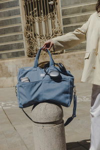 Nos sacs de voyage sont coupés dans des matières européennes (velours côtelé texturé, toiles épaisses) sélectionnées pour leur tenue. Les pièces sont confectionnées au Portugal en petites séries, avec des finitions soignées : sangle réglable amovible, passant de maintien pour la valise, poche extérieures et intérieurs sur tous les modèles, doublures robustes.