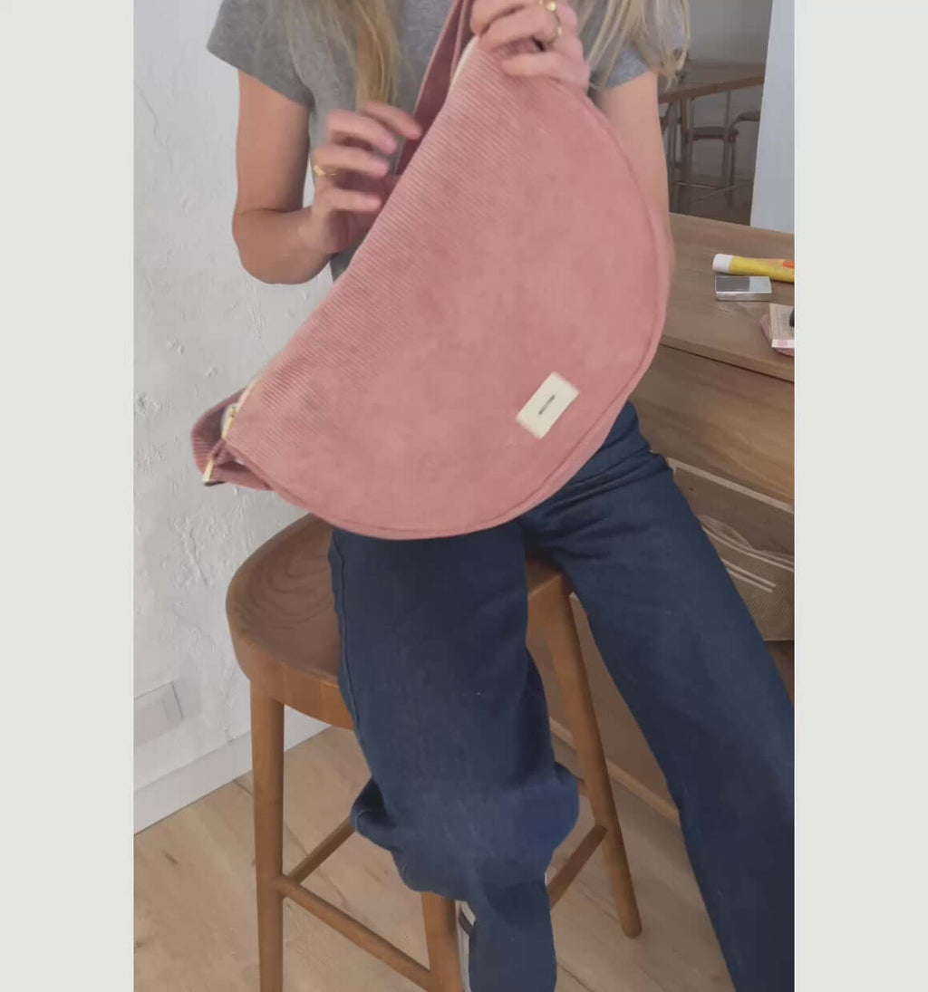 Coloris vieux rose. Tissu velours côtelé au toucher doux.