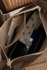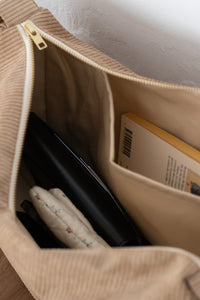 Lors de son développement nous avons souhaité mettre au point un accessoire dont la contenance s'adapte à vos besoins tout au long de la journée. Nous avons travaillé le fond du sac avec un pli. Cela offre la possibilité au sac de conserver la même forme qu'il soit peu ou très rempli.