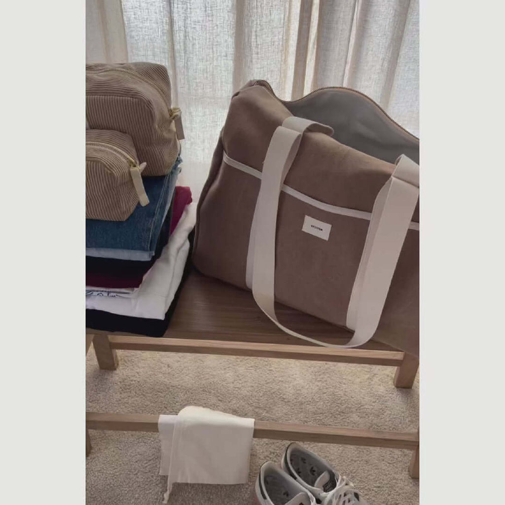 Avec ses différentes poches, ses anses et son passant pour la valise, on ne peut plus s'en passer.